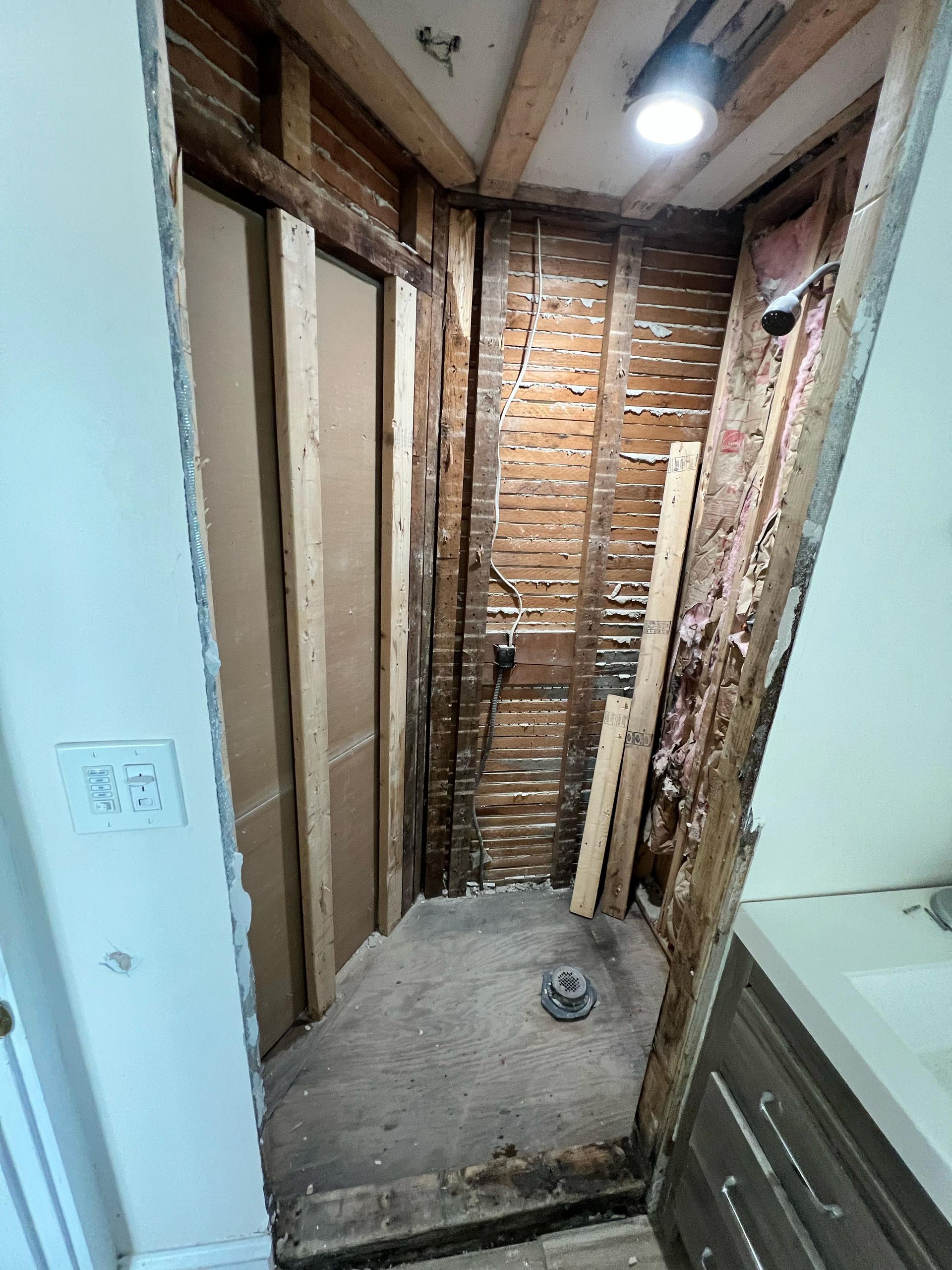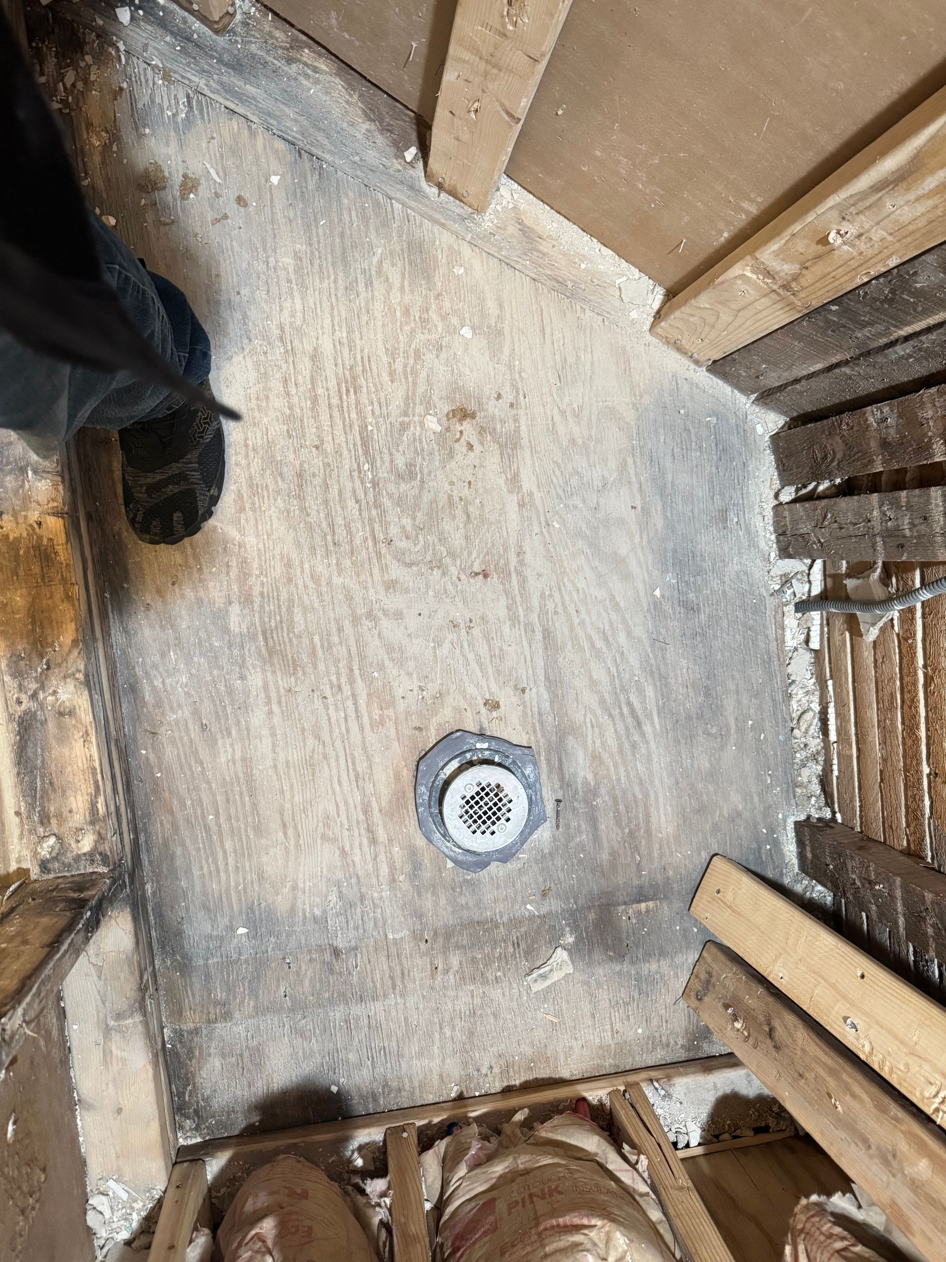 We then brought in a licensed plumber to inspect and address the plumbing, ensure there were no active leaks, and make sure everything was properly connected and up to code before we rebuilt the shower.