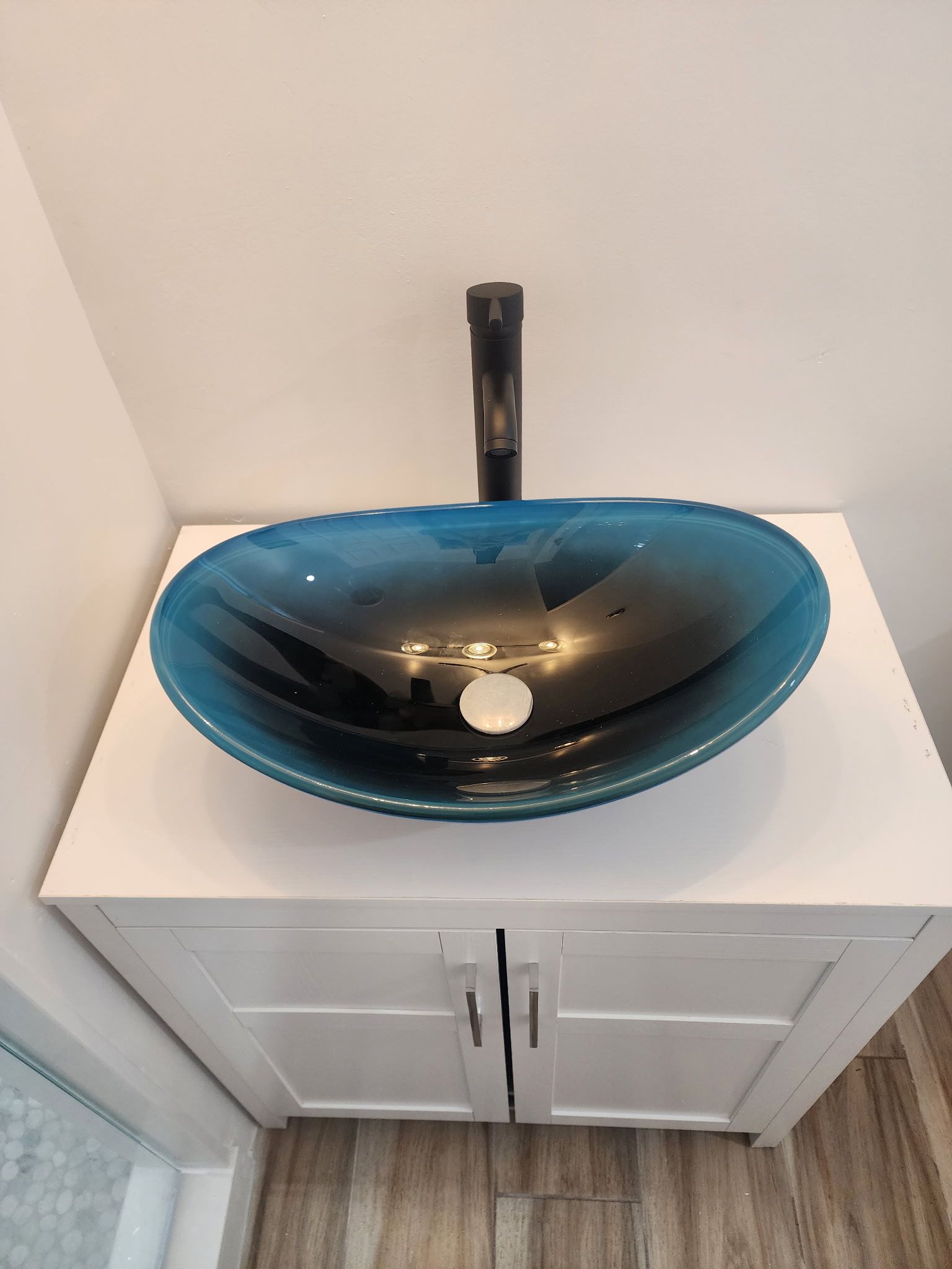 While the shower work was underway, Kathleen also decided to upgrade her bathroom vanity, which helped modernize the space and made the bathroom feel like a full renovation rather than just a repair.