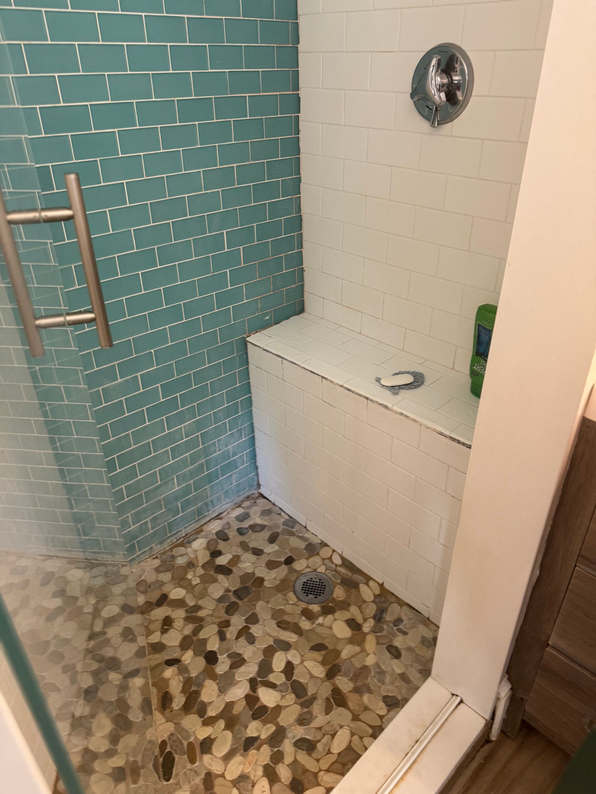 - Rebuilt the shower bench with proper slope for drainage